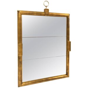 Italian Modernist Brass Mirror with a Decorative Ring at the Top